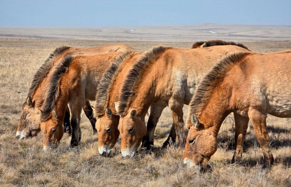 Лошади Пржевальского радуются ей не меньше нас. Стада разделились по семьям, вожаки заняты гаремами, а в воздухе — весна, ветер и ожидание первых жеребят. Лошади линяют, бегают, дерутся и влюбляются — всё как положено.