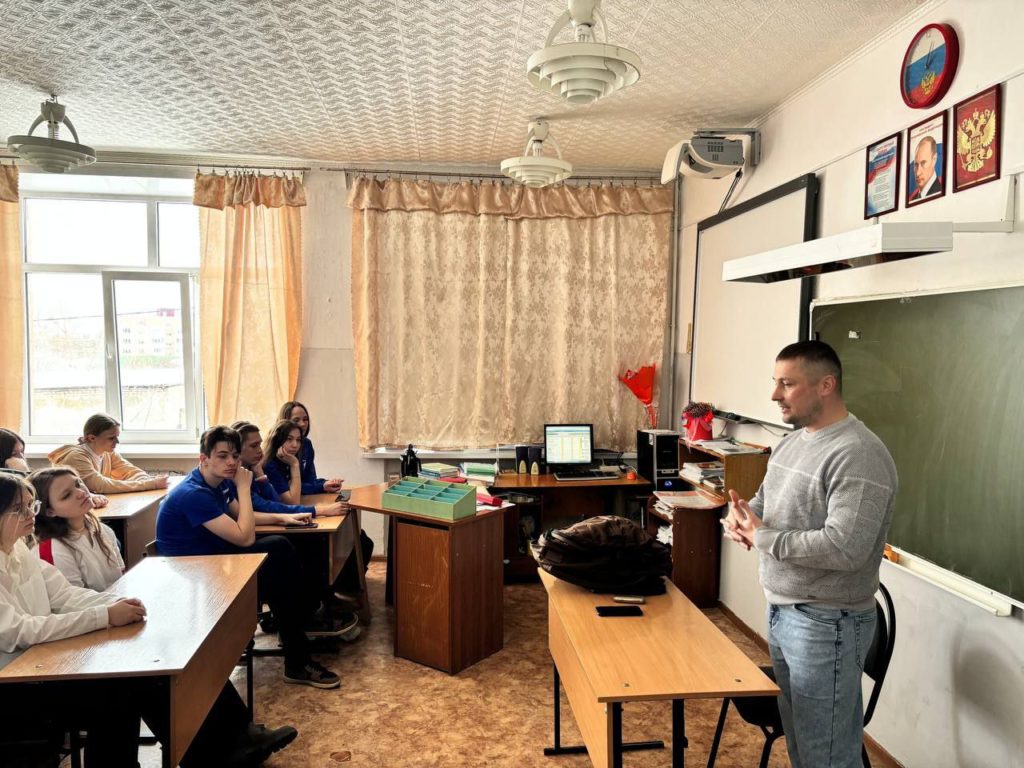 18 марта в средней школе №2 состоялась встреча активистов «Движения Первых» с бойцом, кадровым офицером Иваном Проскуркиным, пришедшим в отпуск из зоны СВО. Старшеклассники проявили живой интерес к рассказу гостя. Его представила и вела встречу лидер местного отделения «Движения Первых» Виктория Костенкова. Общение ребят с участником специальной военной операции проходило в формате вопросов-ответов. Иван Сергеевич – бывший выпускник школы №2, он невольно вспомнил дни своей юности, слегка позавидовал ребятам в том, что сейчас у них лучше, чем в 90-х, условия учёбы и возможности для занятий спортом. А ныне он сам – майор, командир стрелкового батальона. У него в подчинении около пятисот опытных бойцов.