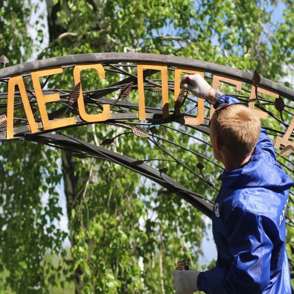 -очистили большую часть территории от сухих веток; — подвязали молодые саженцы кедра, лиственницы, ели и сосны; — обновили вид главной арки «Леса Победы»; — привели в порядок территорию мемориального комплекса «Воинам-медногорцам посвящается».
