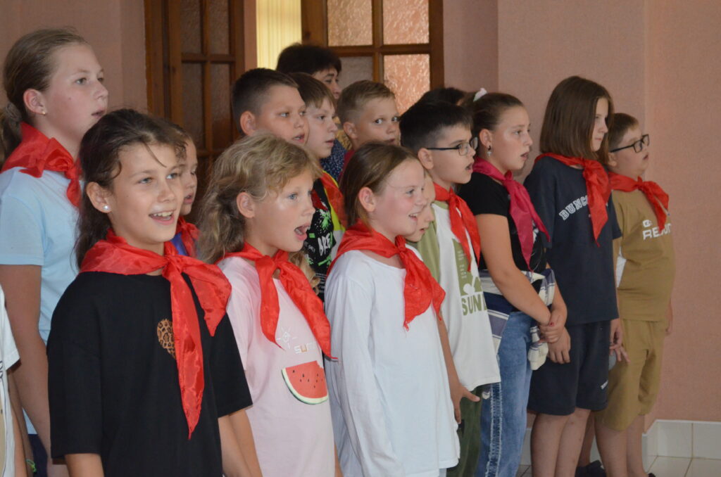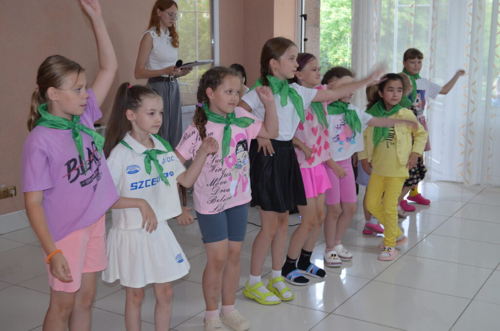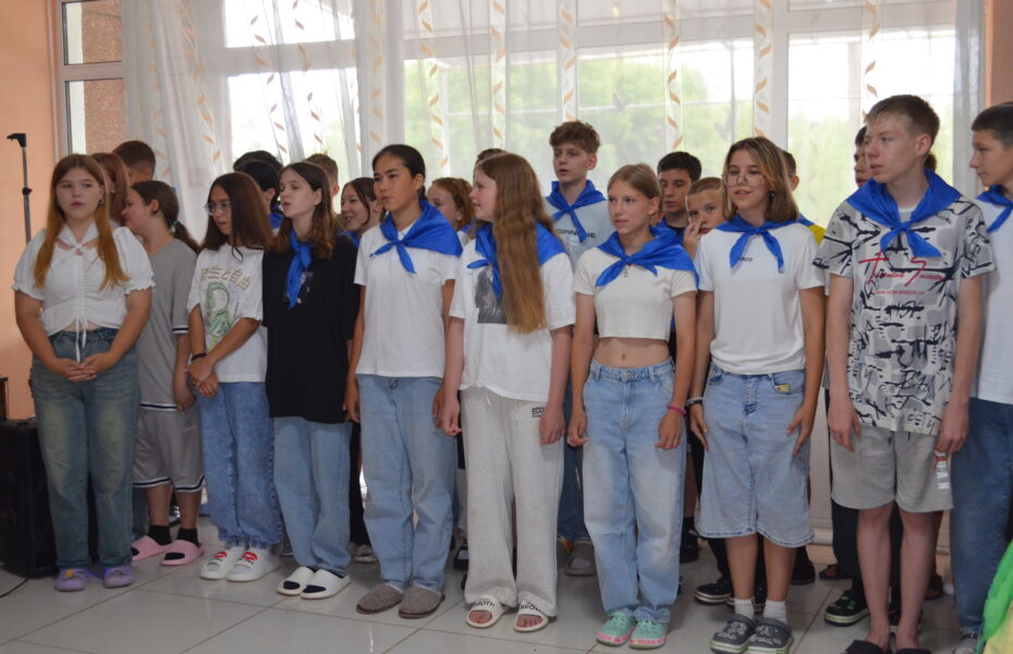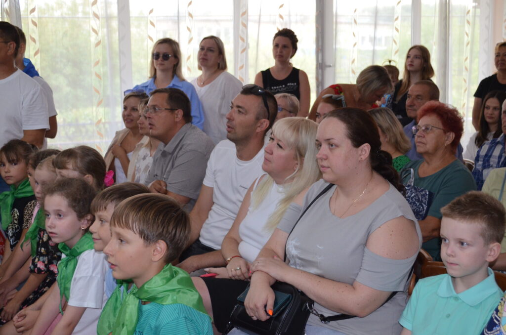 Директор профилактория Н.Р.Гатауллина со старшей вожатой Анастасией Скворцовой принимала рапорт отрядов.В Год 80-летия Великой Победы все лагерные мероприятия — на военную тематику.Родители — самые благодарные зрители.Мама всегда поддержит.У каждого отряда — свои галстуки.Веселый танец под песню о России.«Смуглянка» в исполнении ложкарей.