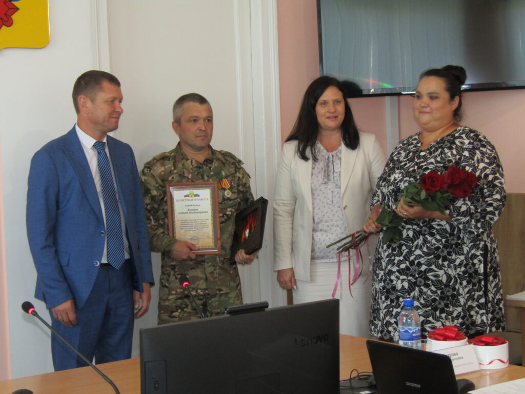 Почетными грамотами Медногорска на очередном, июльском, заседании Совета депутатов были награждены наши земляки — участники специальной военной операции Константин Рузанов и Алексей Яковлев. Ребята были отмечены наградой за образцовое исполнение воинского долга, проявленное мужество и успешное выполнение задач, способствующих достижению целей специальной военной операции и личный вклад в укрепление рубежей нашей Родины. Сердечные слова благодарности бойцам адресовали председатель горсовета Елена Мудрова и глава Медногорска Андрей Нижегородов. Позже за чашкой чая в неформальной обстановке бойцы вместе с женами рассказали о военной жизни и о том, чем занимаются в краткосрочном отпуске дома.