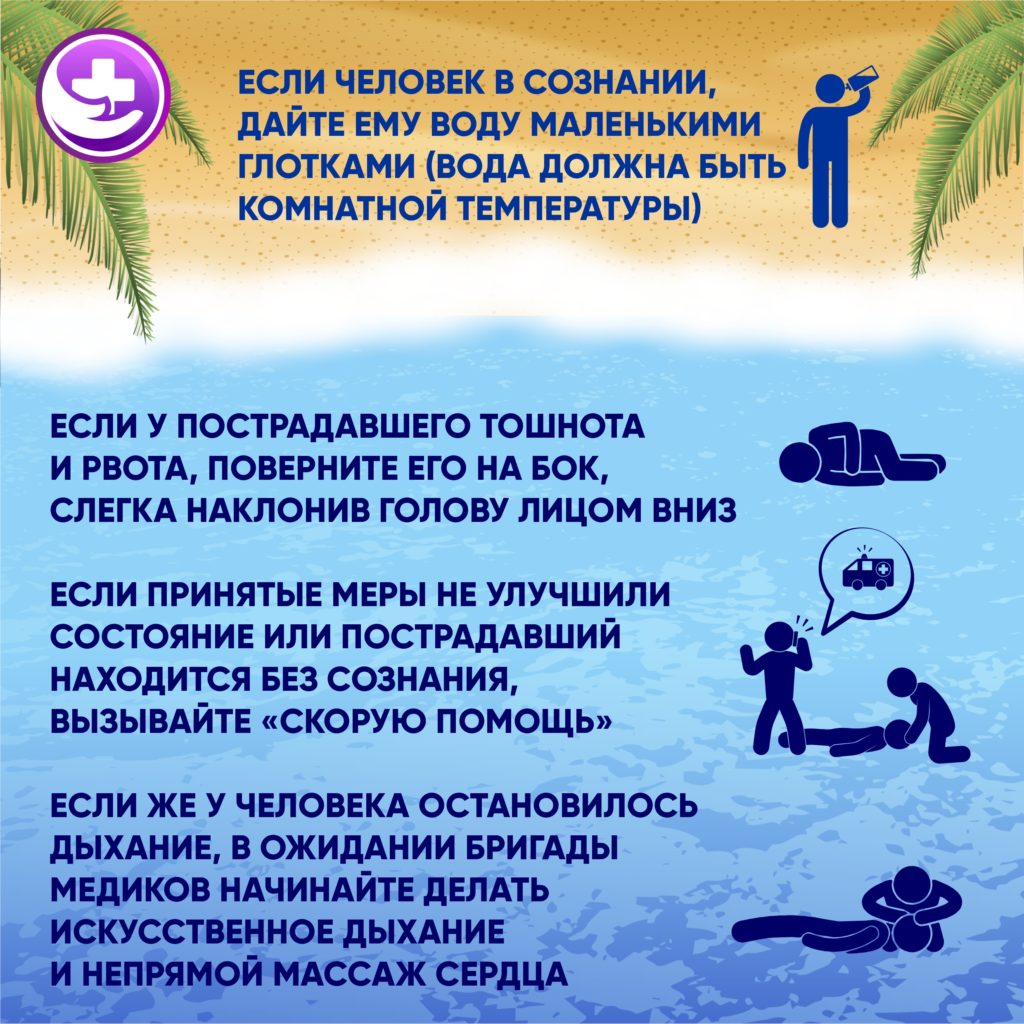 — если человек в сознании, полезно дать ему пить воду маленькими глотками (вода должна быть комнатной температуры);