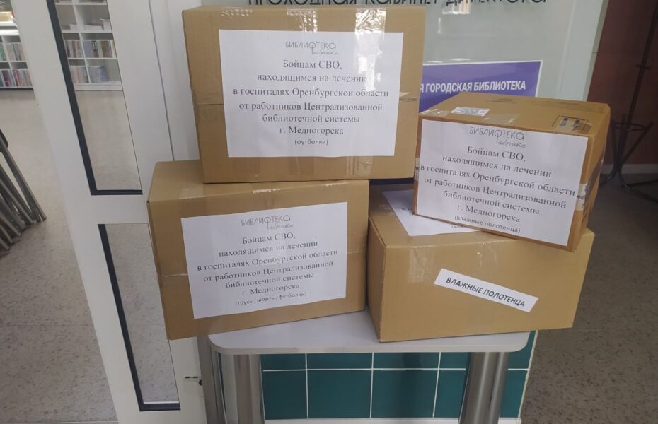 В июле Централизованной библиотечной системой была объявлена благотворительная акция в помощь госпиталям Оренбургской области для раненых бойцов СВО. Вместе с библиотекарями в акции приняли участие Медногорский городской совет женщин, коллектив детского сада № 2 «Ромашка», неравнодушные жители города: команда «Алга», семьи Шакирьян Кадыргуловой, Мефед, Уткиных, Иванова Людмила Матвеевна, Рыбникова Татьяна, Каменева Ольга Михайловна и другие.