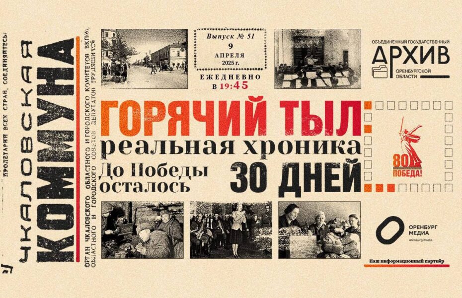 В Оренбуржье реализуется аудиопроект «Горячий тыл: реальная хроника». С 18 февраля архивная служба области выпускает программы о жизни Чкаловской области в годы войны. Из 80 запланированных выпусков вышло 51.