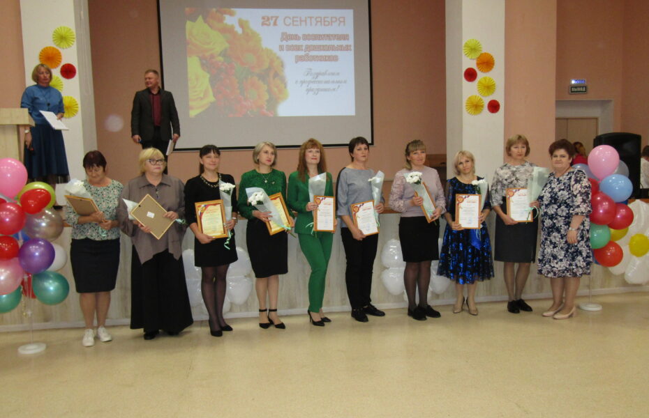 На торжество прибыли также руководители организаций и предприятий города, родители учащихся, педагоги-ветераны – зал был переполнен. Праздничную атмосферу создавали как яркие баннеры и фотозона в вестибюле ДК, так и множество живых цветов, которые благодарные ученики принесли для своих любимых педагогов.