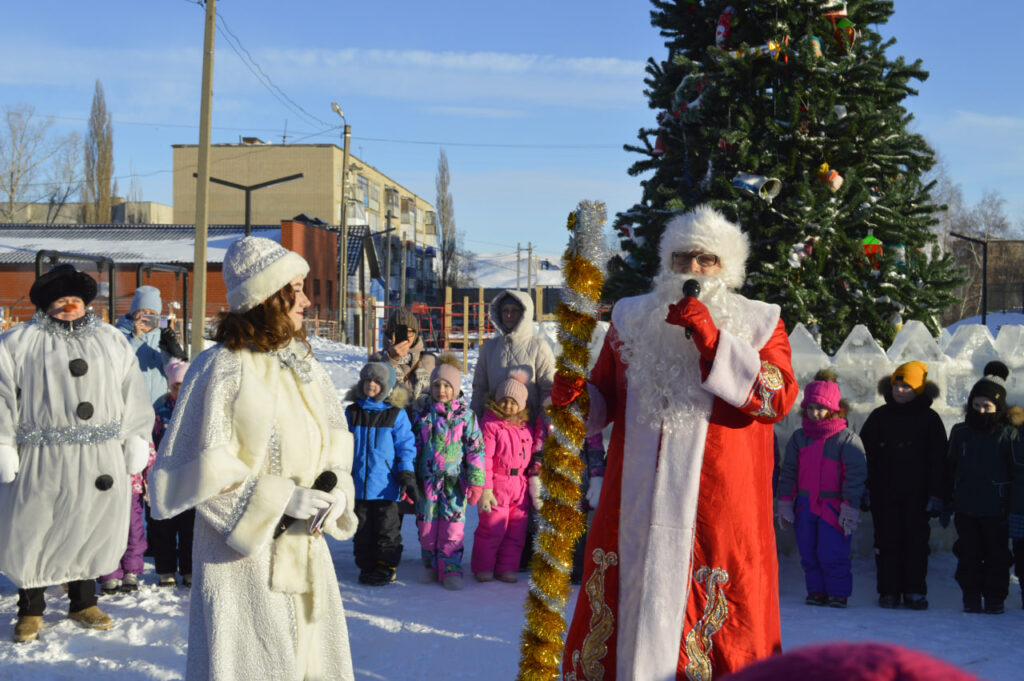 Погода в первый рабочий день заключительной недели 2024 года удивила морозной ясностью и ослепительным солнцем, что не помешало детям веселиться на праздничном утреннике. Главная площадь микрорайона Южный заполнилась ребятишками из гимназии, детских садов «Светлячок» и «Золотой ключик».