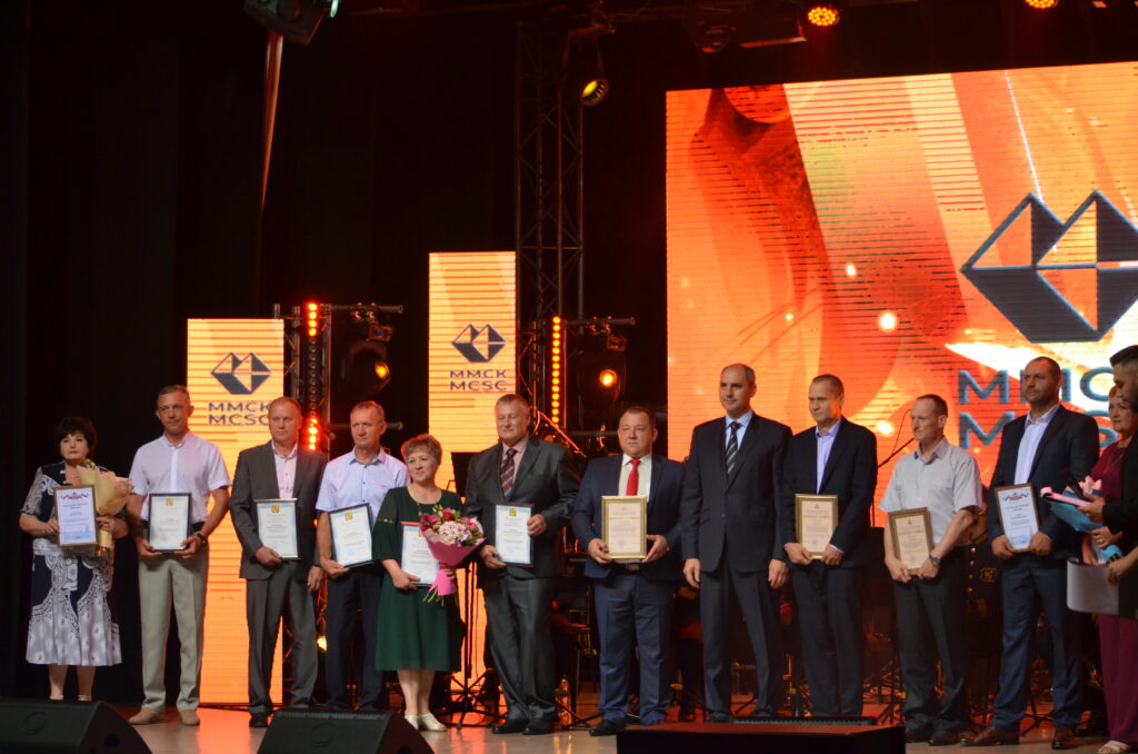 Почетную грамоту Министерства промышленности и торговли РФ Денис Владимирович вручил Дмитрию Денисову, мастеру по ремонту оборудования медеплавильного цеха, Павлу Ильину, мастеру по ремонту оборудования МПЦ, Алексею Жукову. машинисту крана медеплавильного цеха.