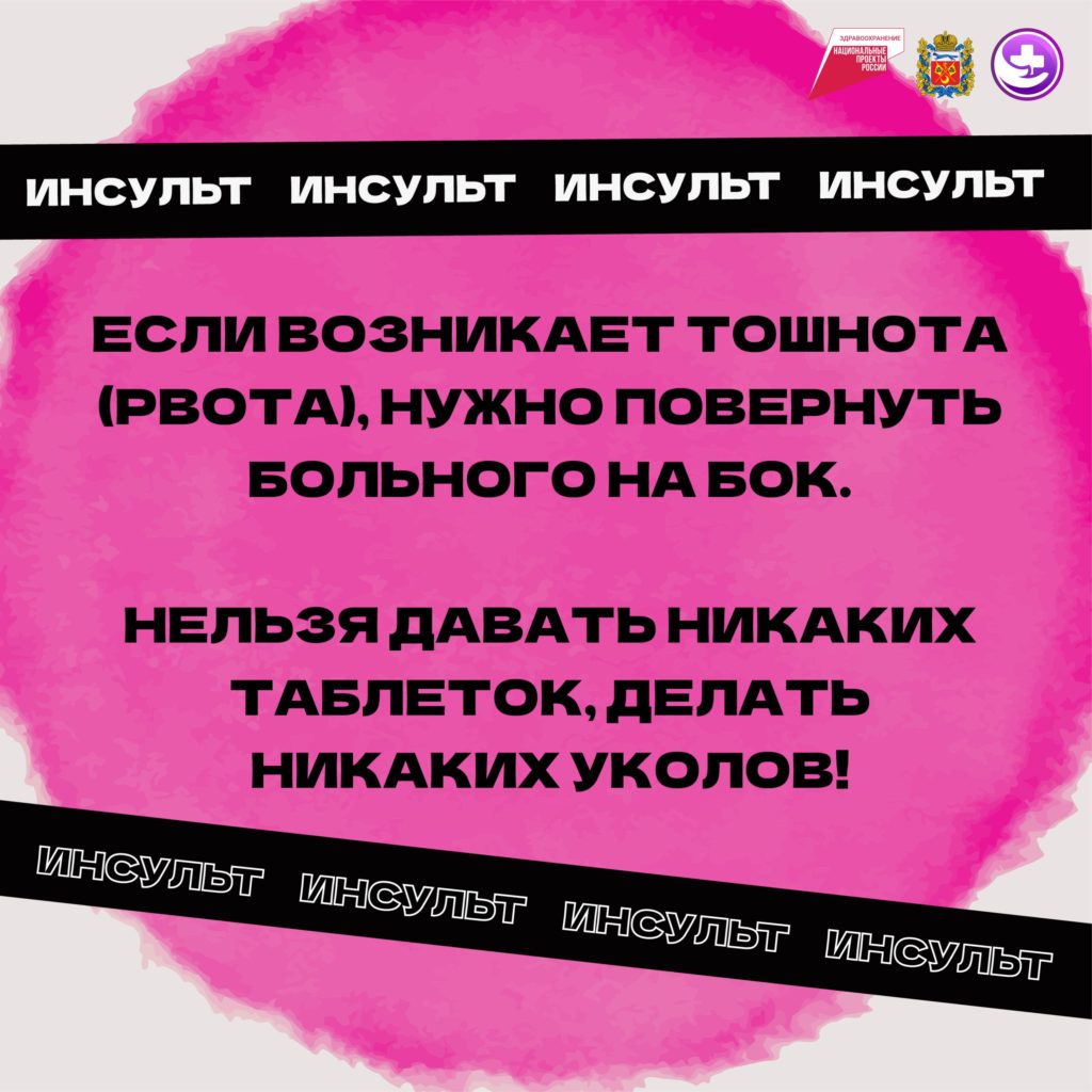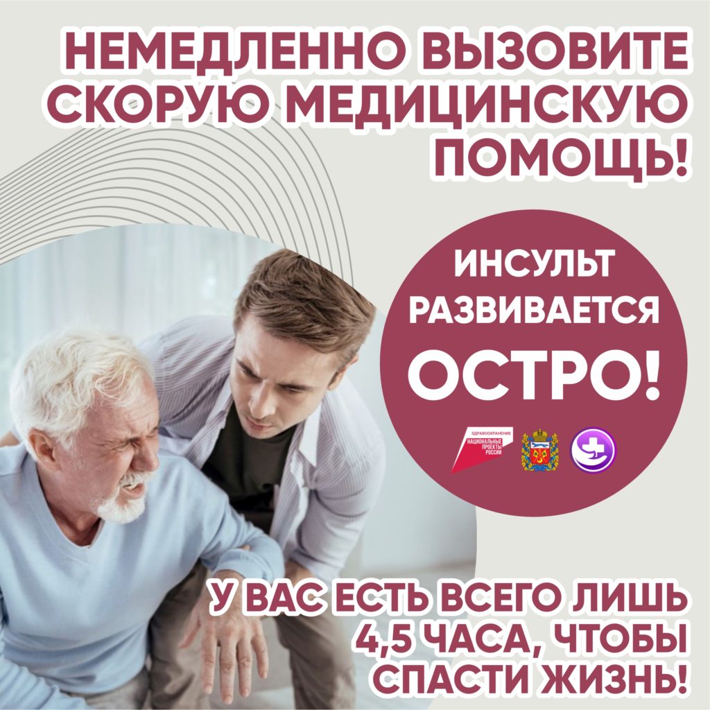 Не ждите, когда станет лучше, сразу вызывайте скорую помощь. Чем своевременнее вы доставите человека в стационар и начнёте его лечение, тем больше шансов сохранить его функциональные возможности – ходить, говорить, участвовать в общественной жизни. Помните правило «золотого часа»: чтобы спасти человека при инсульте, необходимо оказать помощь в течение 4,5 часа после наступления сердечно-сосудистой катастрофы.
